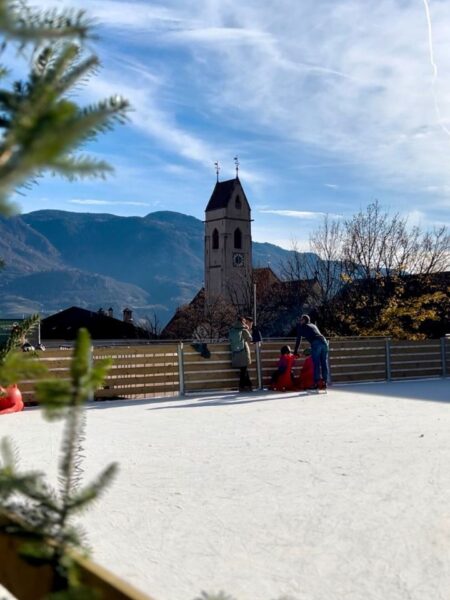 Eislaufen mitten in Schenna: Die Kunsteisbahn bietet Familien und Kindern nahe Meran winterlichen Spaß im Herzen Südtirols.