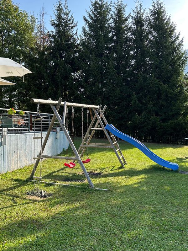 - Spielplatz – Rutsche, Schaukeln & Häuschen, direkt in Sichtweite der Bar