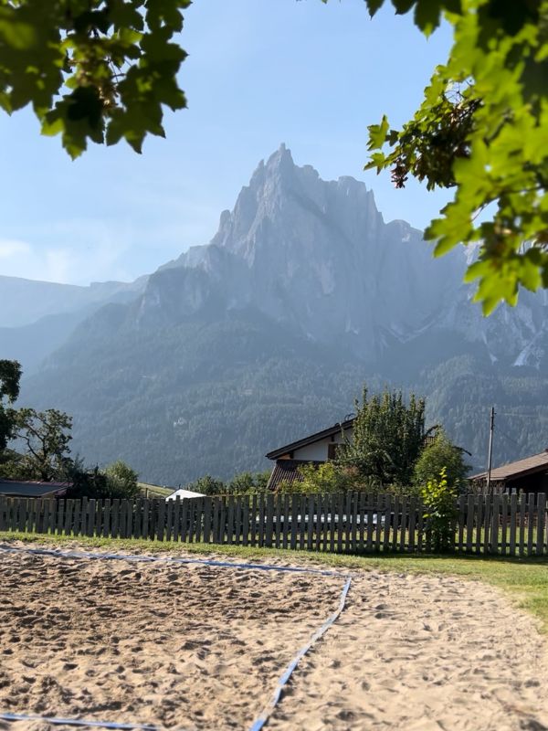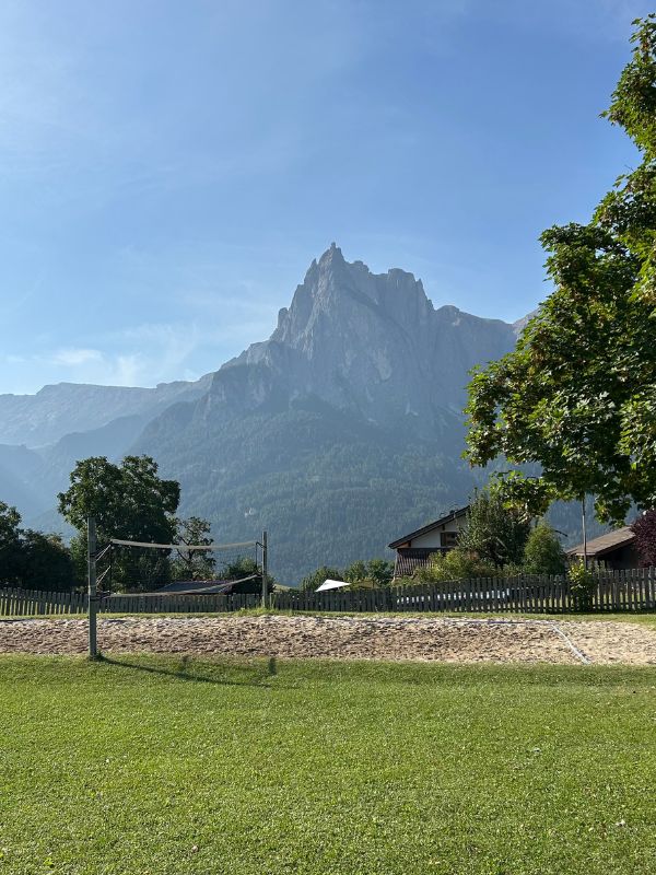 Im Schwimmbad in Telfen bei Kastelruth genießt ihr einen traumhaften Blick auf die Dolomiten – das UNESCO Weltnaturerbe ist einfach atemberaubend.