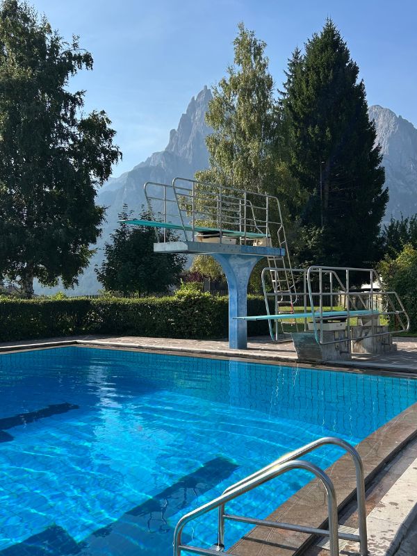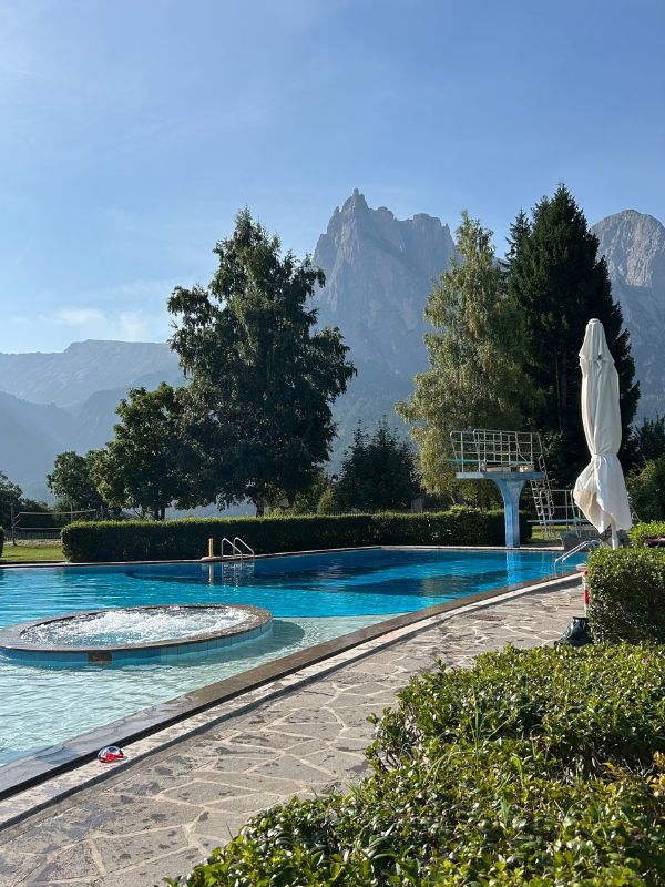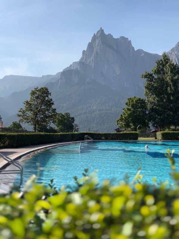 Für uns eines der schönsten Schwimmbäder in Südtirol. Ja, die Preise an der Bar liegen etwas über dem Durchschnitt – aber der spektakuläre Blick auf die Dolomiten macht das mehr als wett. Absolut einen Besuch wert!