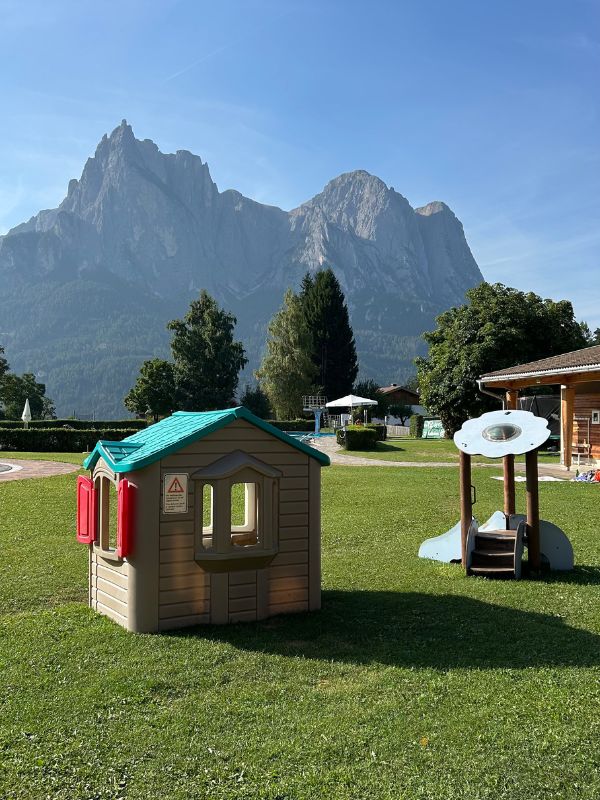 Das Schwimmbad in Kastelruth ist nicht nur sehr familienfreundlich, sondern bietet auch einen traumhaften Panoramablick auf die Dolomiten.