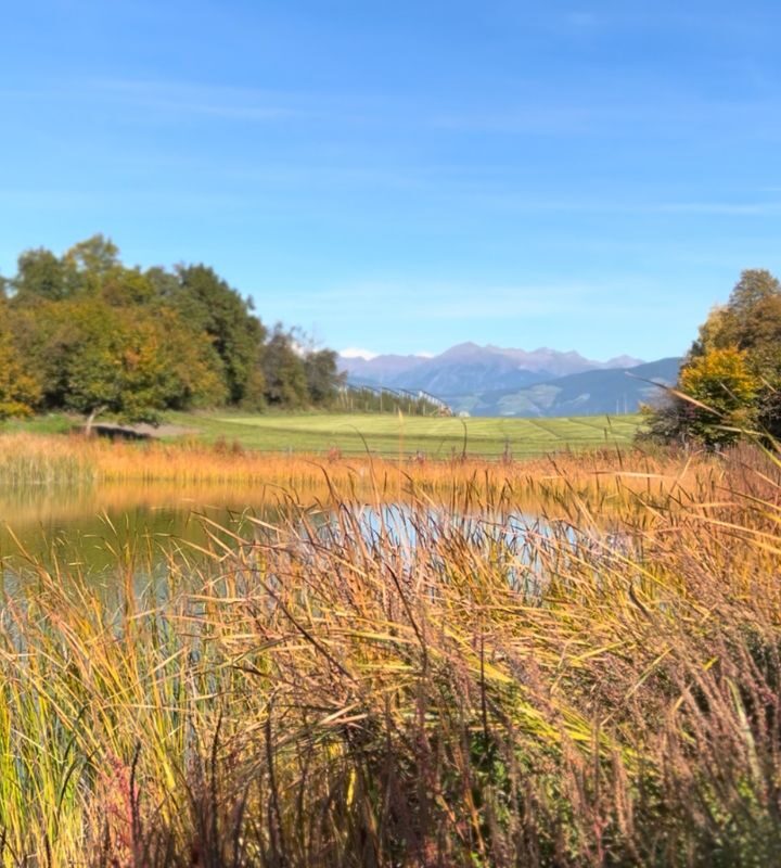 Ein kurzer, familienfreundlicher Spaziergang in Teis führt zur idyllischen Mesner Lacke – mit herrlichem Bergpanorama, Infostation zu den Gesteinen und einem tollen Spielplatz in der Nähe. Perfekt für Familien mit Kindern im Eisacktal, besonders im farbenfrohen Herbst.